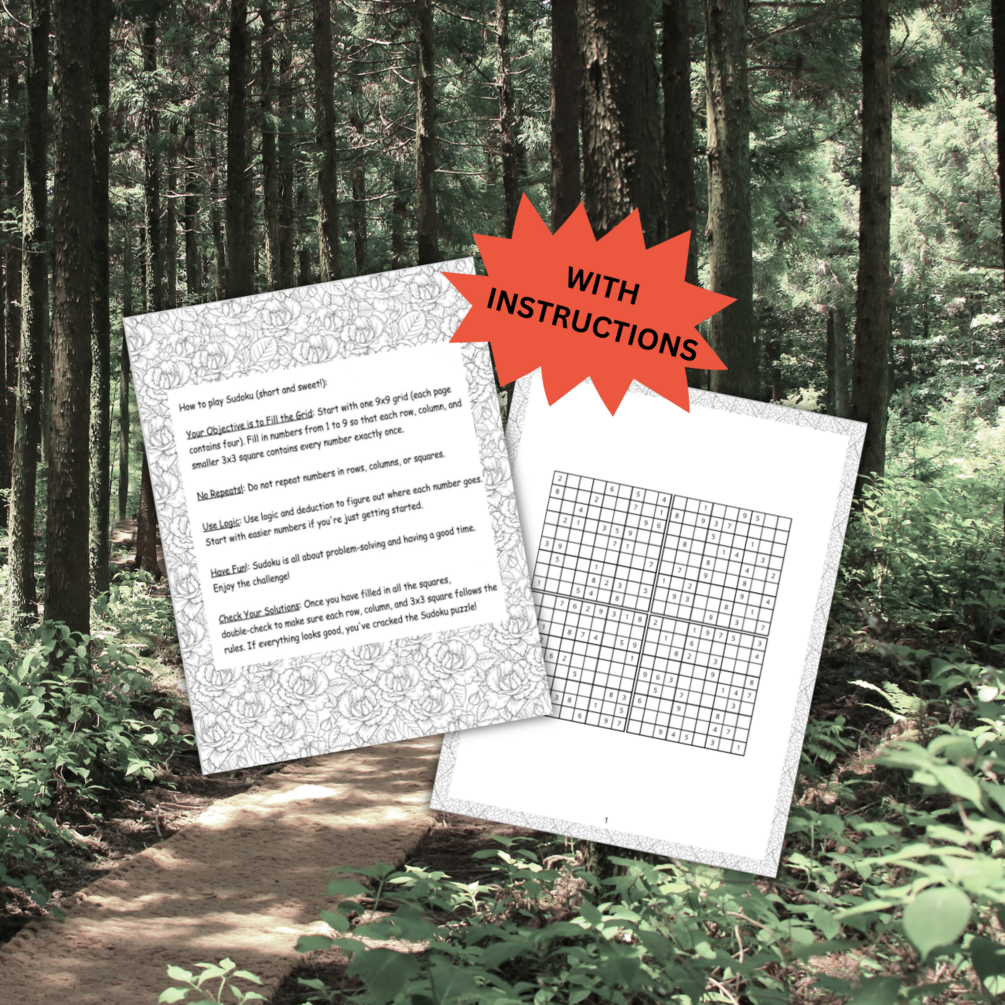 100 Nature-Themed Sudoku Puzzles - to be stapled together or tied with some twine or ribbon