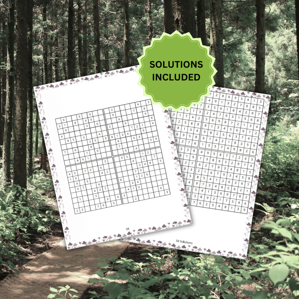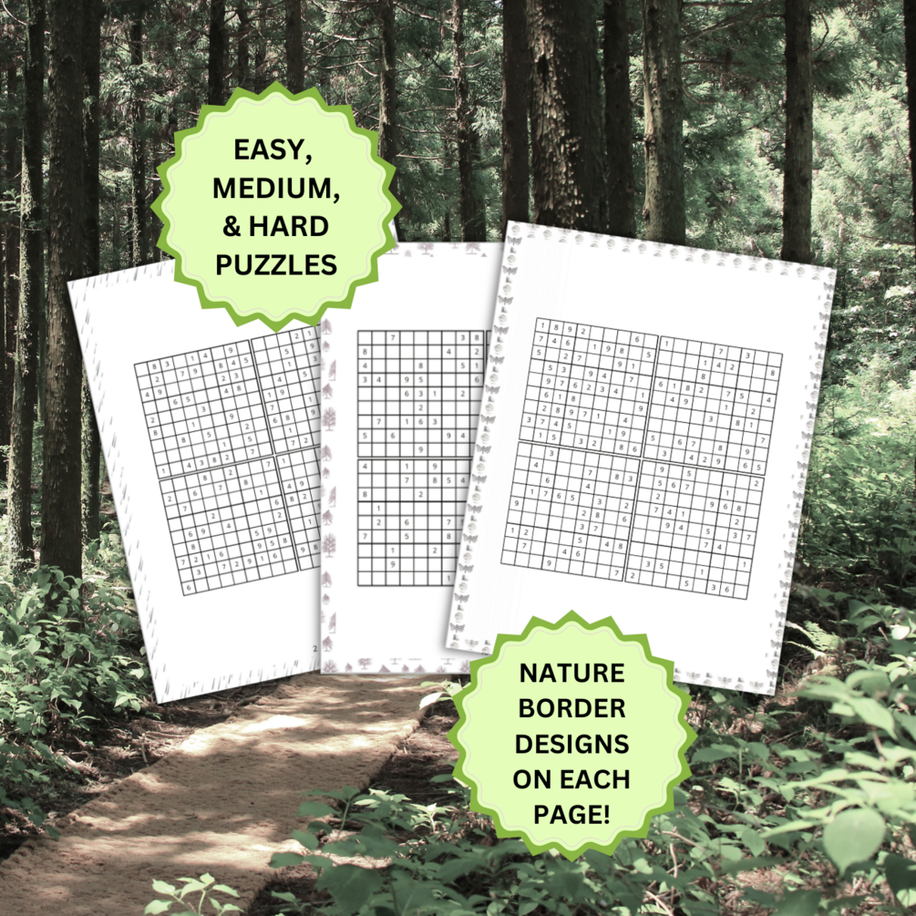 100 Nature-Themed Sudoku Puzzles - to be stapled together or tied with some twine or ribbon