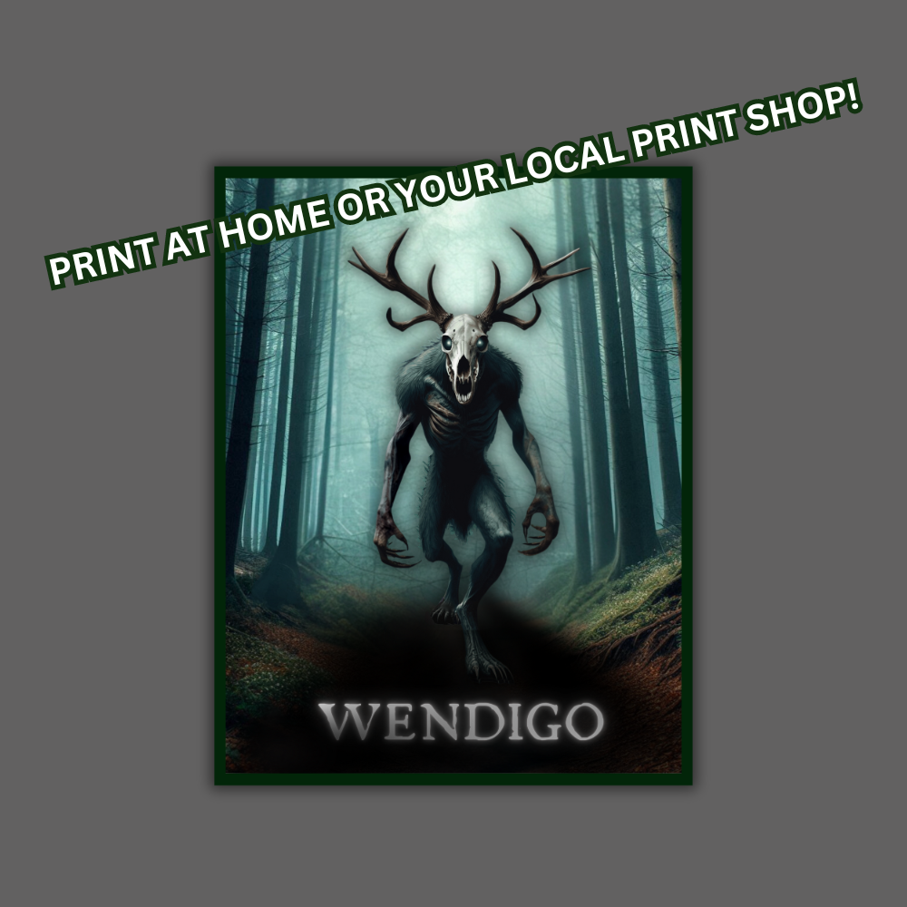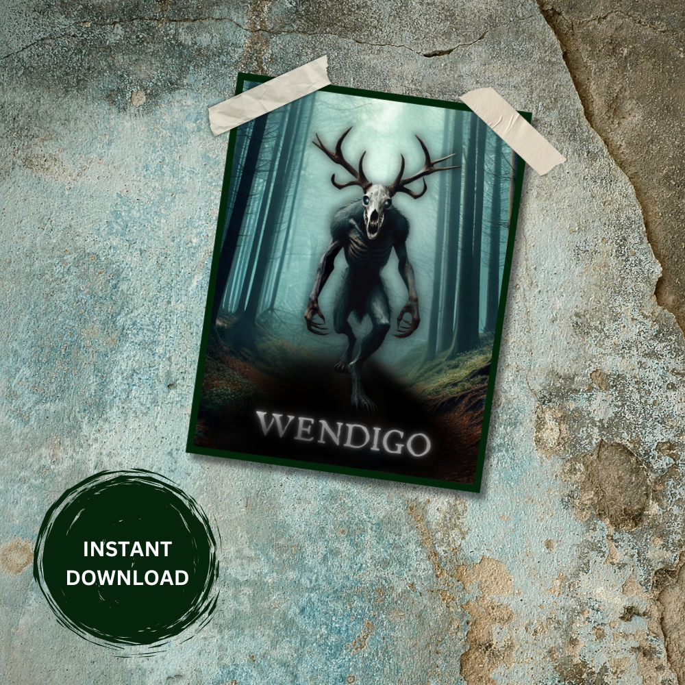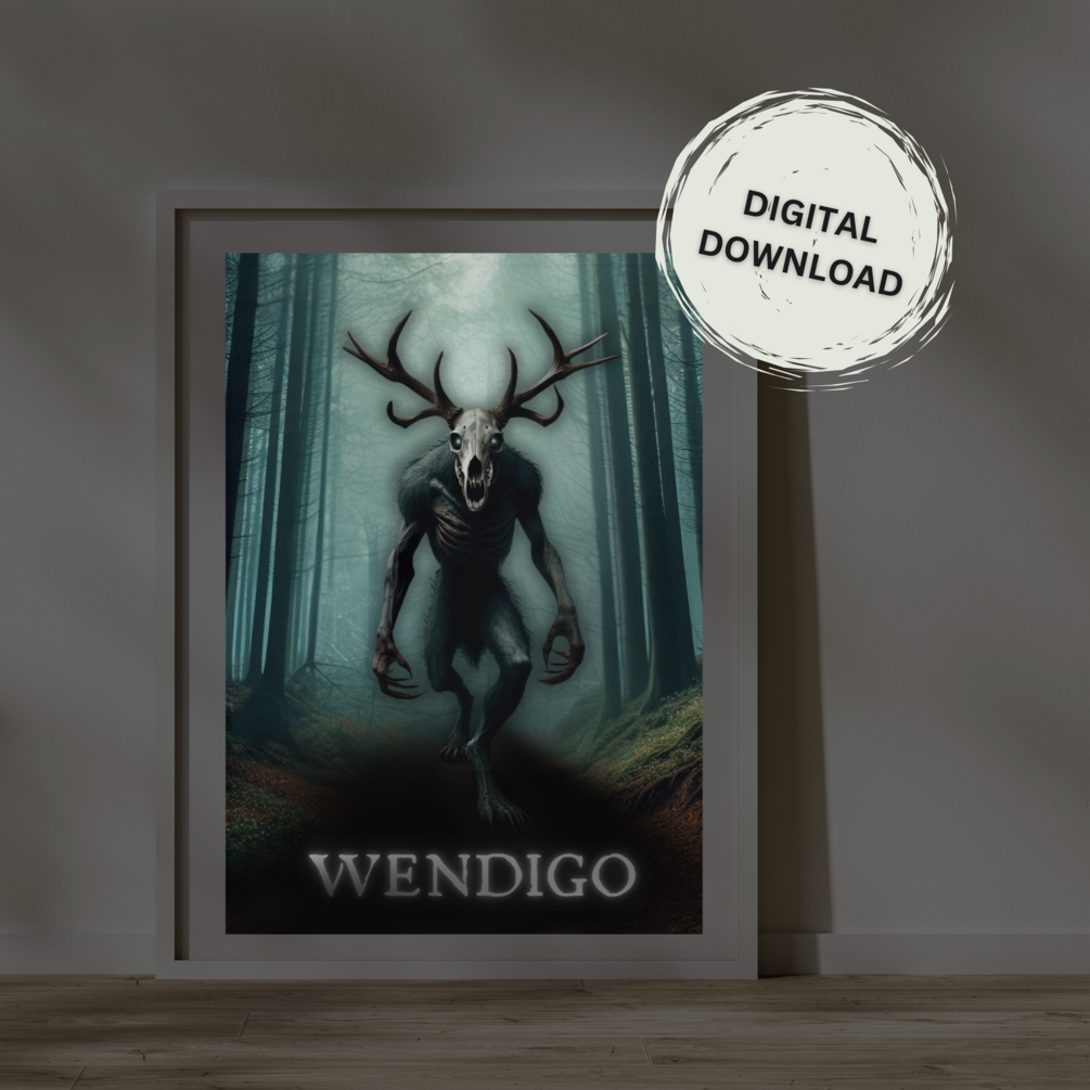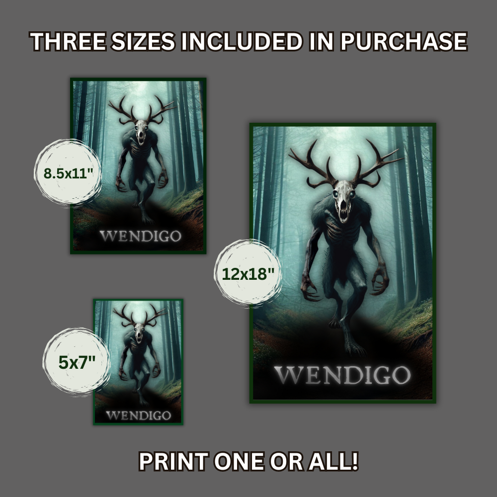 Wendigo Poster DIGITAL DOWNLOAD. The Native American Horror Cryptid of Creepy Legends & Scary Folklore. Printable Wendigo Art. Three Sizes