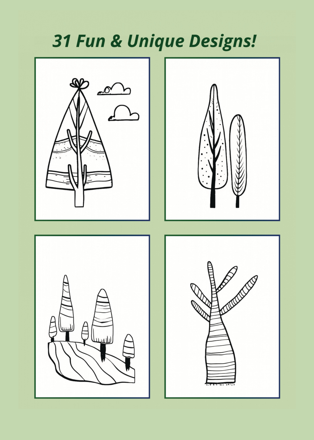 31 unique coloring images for the artsy tree lover.