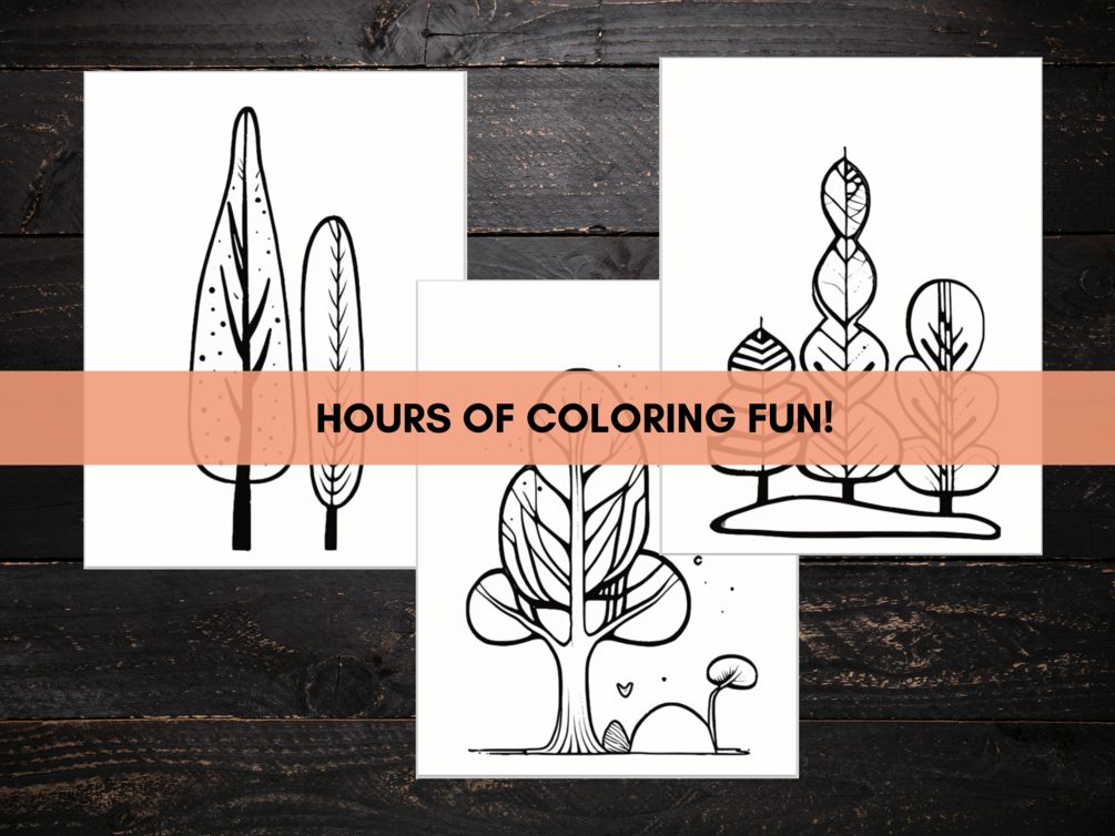 Cute and Wonky Trees Coloring book - to be stapled together or tied with some twine or ribbon